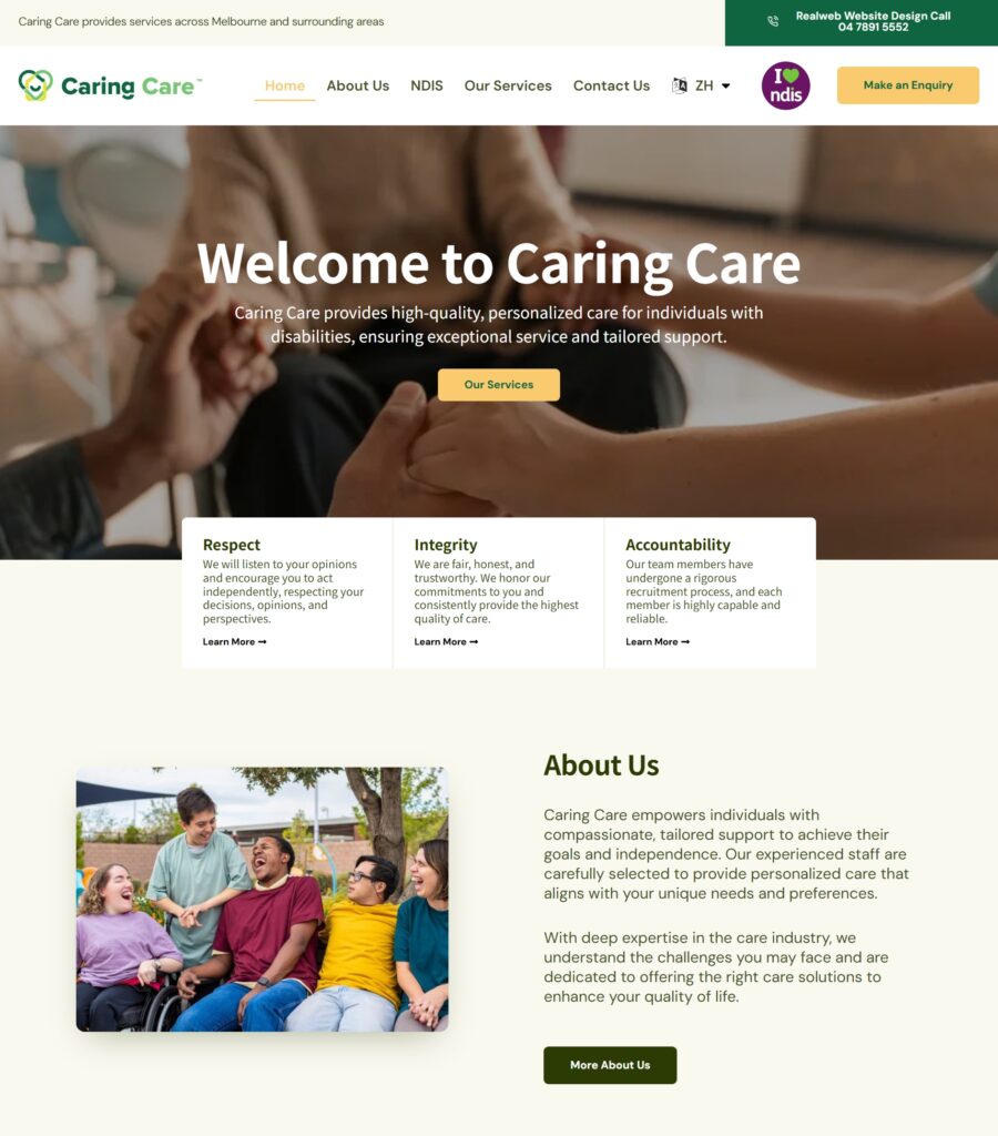 In disability support, trust matters. We design clear, accessible NDIS websites that help families and participants connect with your services.
